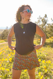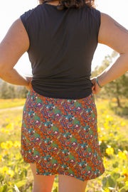 We know skorts, and we know prints, and that combo is mm mmm good. We think solid shorts are boring, so we put our favorite print on them. This skort turns 10 this year, so we updated it with a higher rise because we all like to age well. Two big pockets and a comfy inner thigh gusset make this skort the perfect companion for anything from a trail run to a talent show.